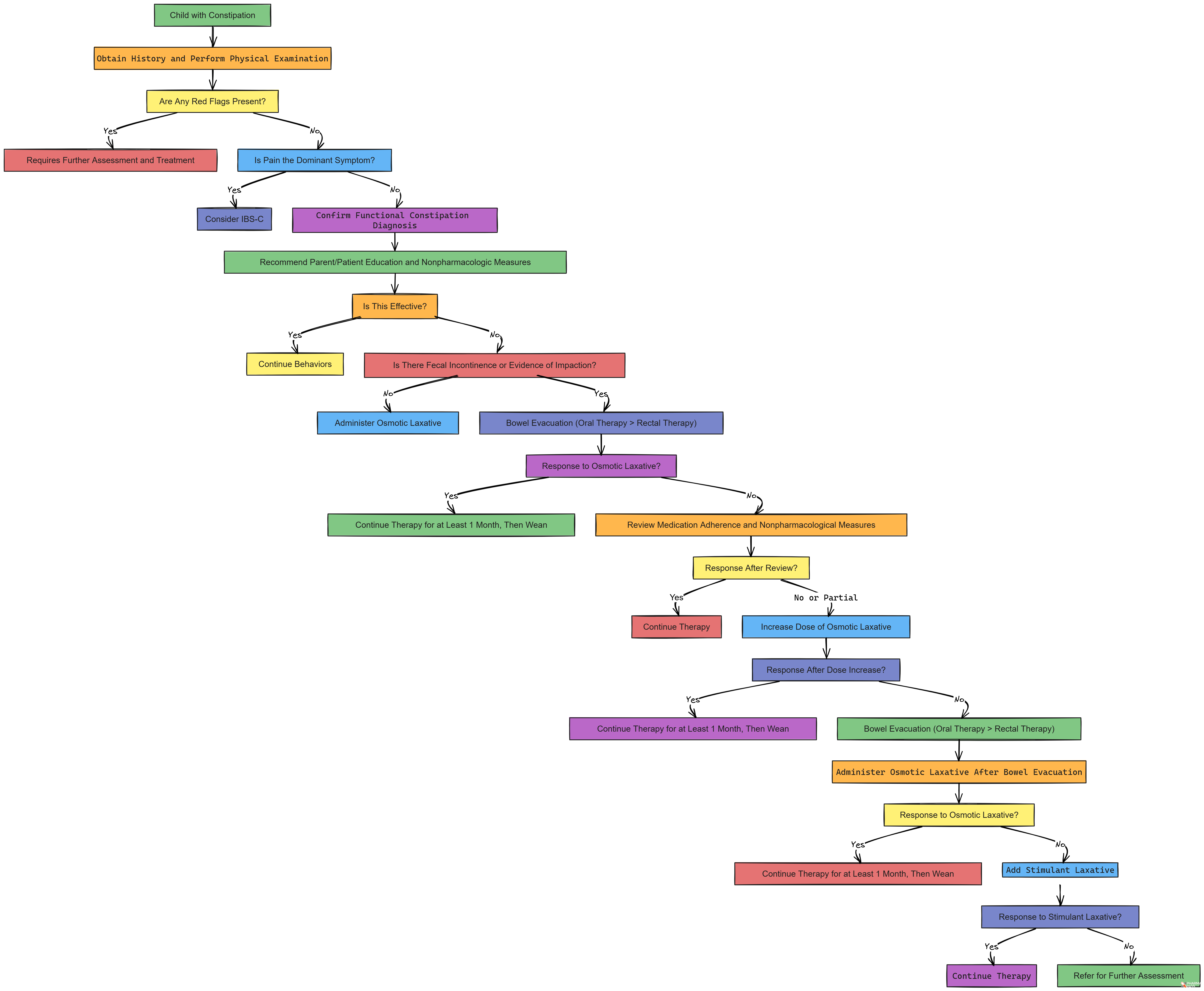 Stimulant Laxatives: Senna or bisacodyl can be used if there is no stool passage after 3 days of osmotic therapy. Concerns about dependency are minimal when used as needed.